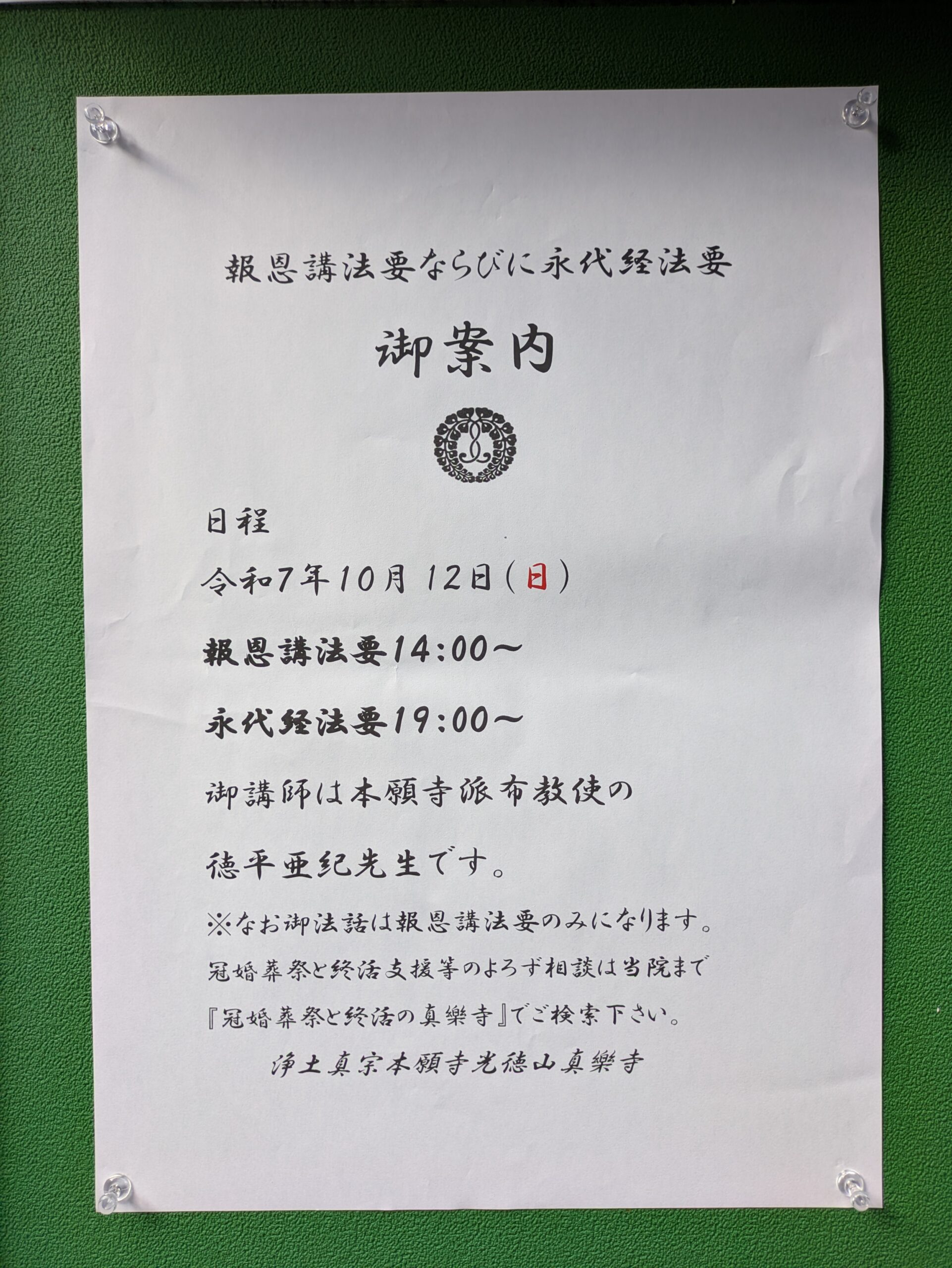 本年度の報恩講法要並びに永代経法要は10月12日(日)に厳修いたします。